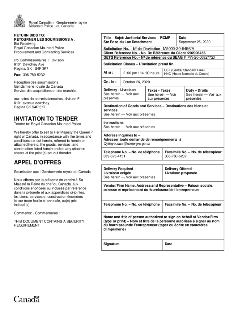 RETURN BIDS TO: RETURNER LES COMMISSIONS A : Bid Receiving Royal Canadian Mounted Police Procurement and Contracting Services c/o Commissionaires, F Division 6101 Dewey Ave Regina, SK S4P 3K7 Fax: