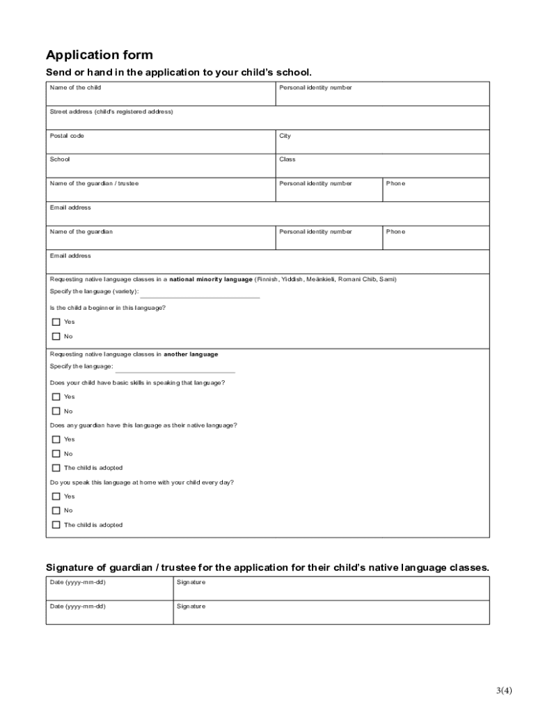 Anskan om modersmlsundervisning Grundskolefrvaltningen EngelskaApplication for native language classes Information on native language classes If your child speaks a language other than Swedish at
