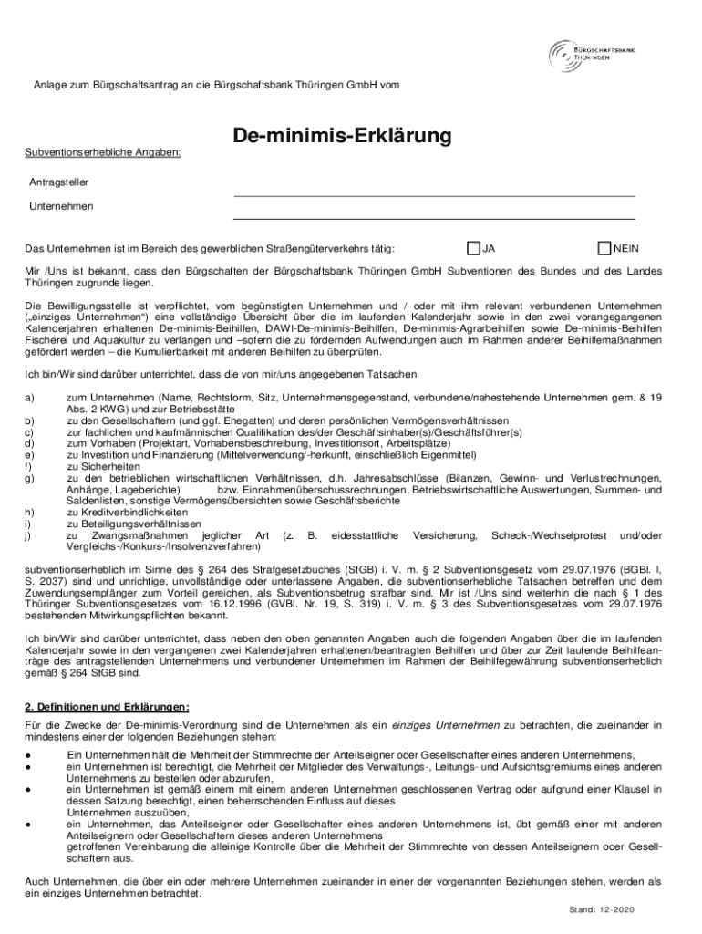 Engage sum Brgschaftsantrag a die Brgschaftsbank Thronged GmbH vomDeminimisErklrung