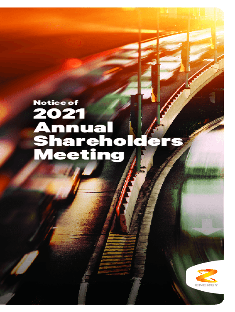 Notice of2021 Annual Shareholders MeetingNOTICE OF MEETING 2021NOTICE OF MEETING 2021Annual Shareholders Meeting:12.30pm on Thursday, 17 June 2021 Dear Shareholder Z Energy Limited1 (Z Energy) invites