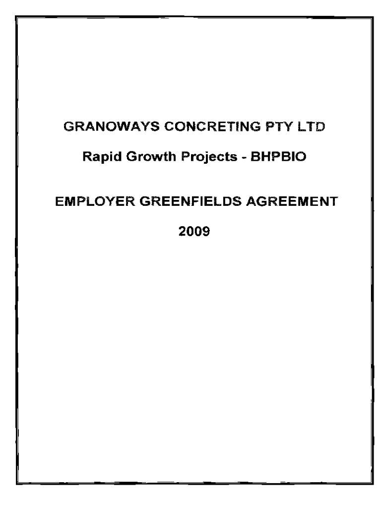 GANGWAYS CONCRETING PTY Rapid Growth Projects BHPBIOEMPLOYER GREENFIELD AGREEMENT2009MACMAHON LEIGHTON JOINT VENTURE (MLV) RAPID GROWTH PROJECTS BHP BIO GREEN FIELDS AGREEMENT 2009CONTENTS 1.0TITLE