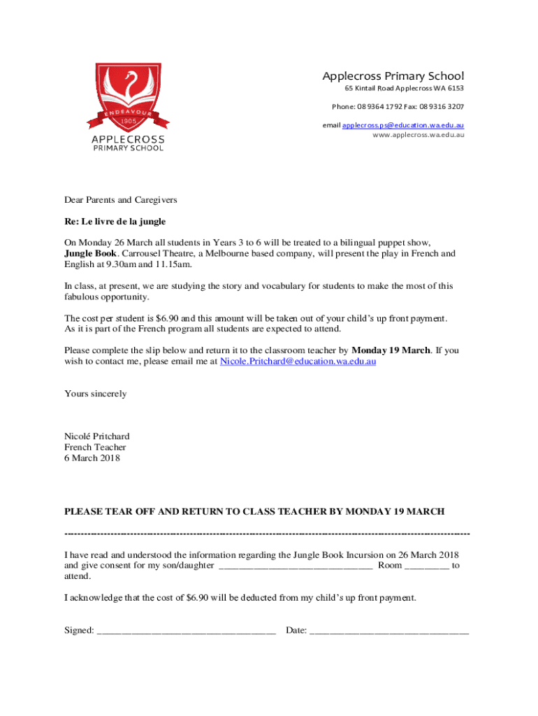 Apple cross Primary School 65 Kin tail Road Apple cross WA 6153 Phone: 08 9364 1792 Fax: 08 9316 3207 email applecross.ps@education.wa.edu.au www.applecross.wa.edu.auDear Parents and Caregivers Re: