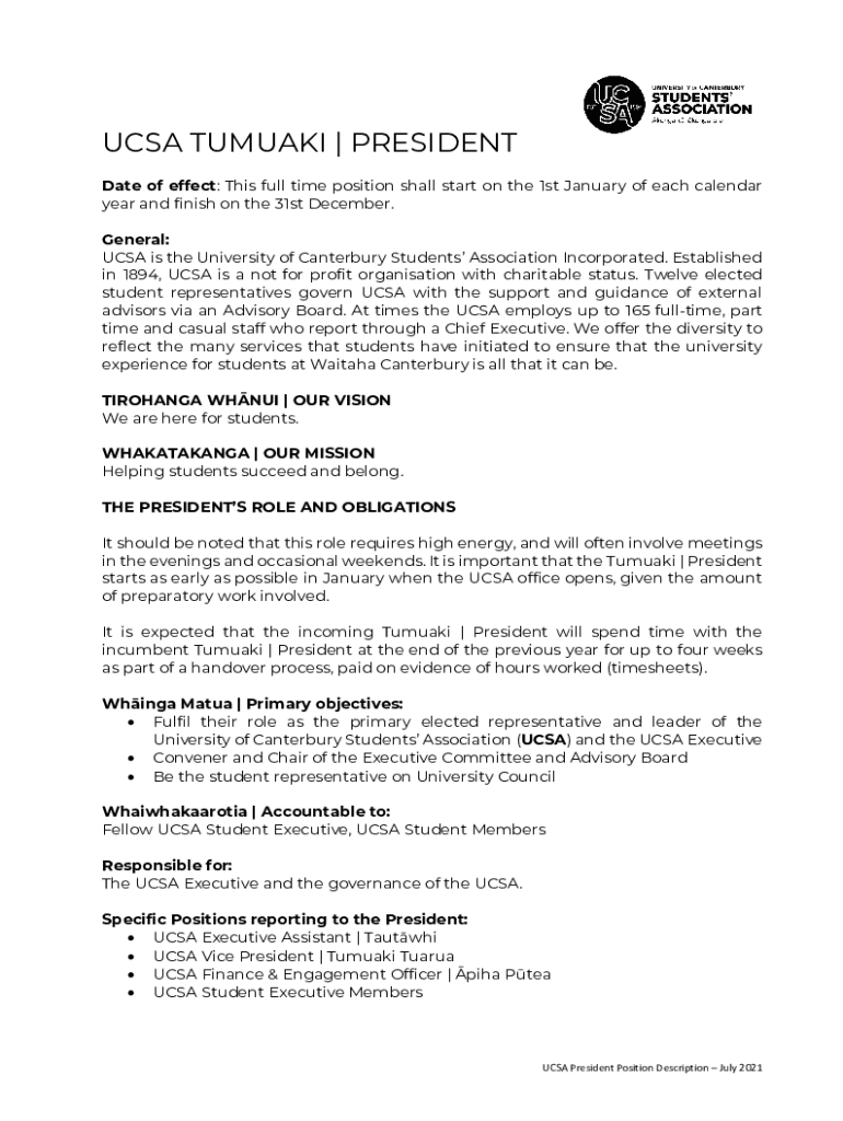 Date of effect: This full time position shall start on the 1st January of each calendar