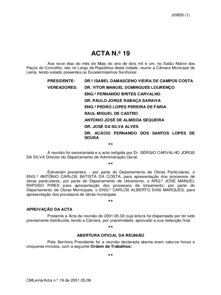 Obtenha o gratuito Aos nove dias do ms de Maio do ano de dois mil e um, no Salo Nobre dos