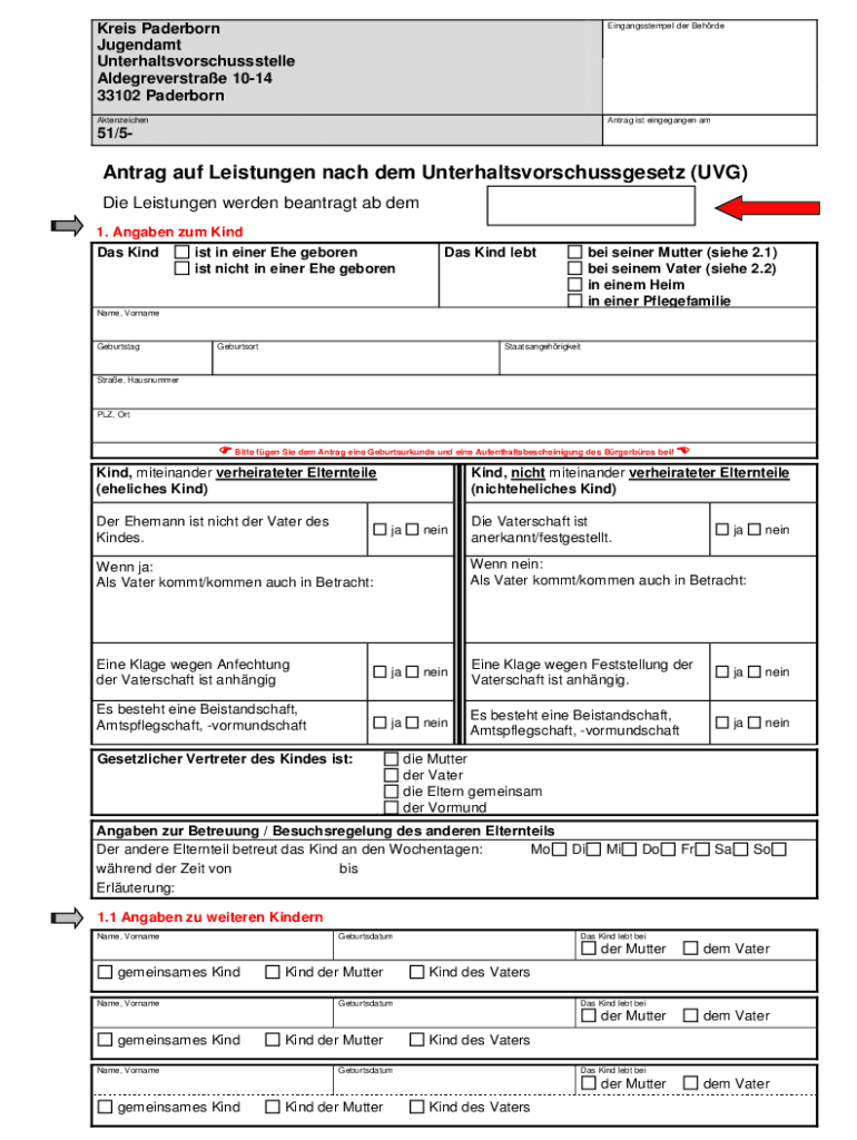 33102 PaderbornEingangsstempel her BehrdeAktenzeichenAntrag is eingegangen am51/5Antrag AUF Lasting each them Unterhaltsvorschussgesetz