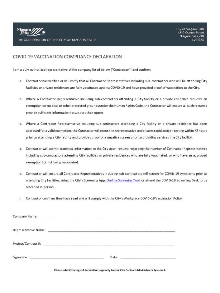 This document contains both information and form fields. To read information, use the Down Arrow from a form field. City of Niagara Falls 4310 Queen Street Niagara Falls, ON L2E 6×5THE CORPORATION