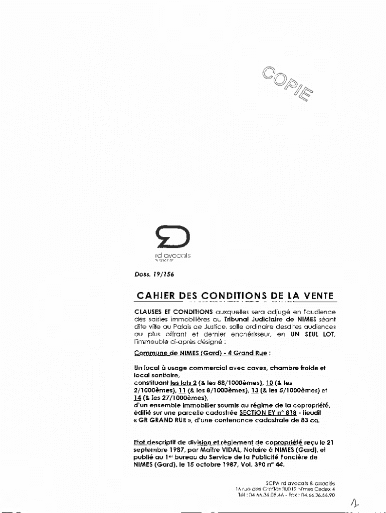 Obtenir le gratuit CAHIER DES CONDITIONS DE LA VENTE. rd avocats. ...