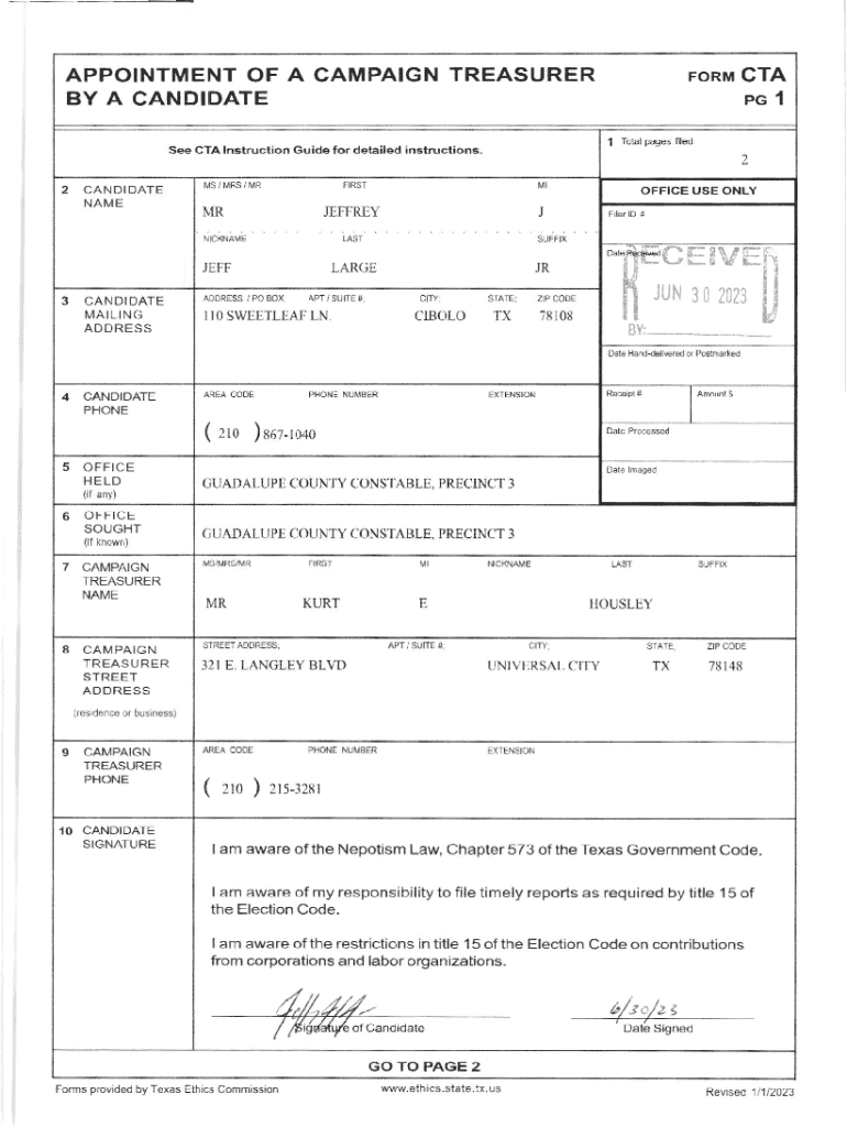 APPOINTMENT OF A CAMPAIGN TREASURER