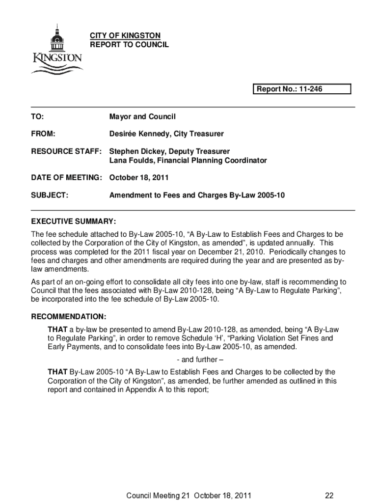 CITY OF KINGSTON REPORT TO COUNCILReport No.: 11246TO:Mayor and Councilor:Desire Kennedy, City TreasurerRESOURCE STAFF:Stephen Dickey, Deputy Treasurer Lana Folds, Financial Planning CoordinatorDATE