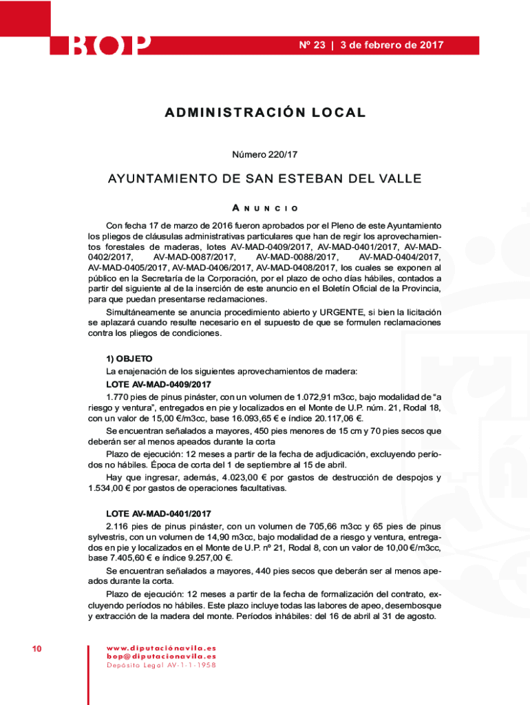 BOPN 23 | 3 de febrero de 2017ADMINISTRACIN LOCALNmero 220/17AYUNTAMIENTO DE SAN ESTEBAN DEL VALLE AN U N C I OCon fecha 17 de marzo de 2016 fueron aprobados por el Pleno de este Ayuntamiento los