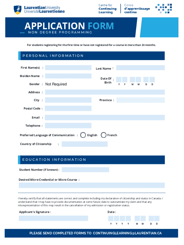 NON-DEGREE Programming students registering for the first time or have not registered for a course in more than 24 months. PERSONAL INFORMATION