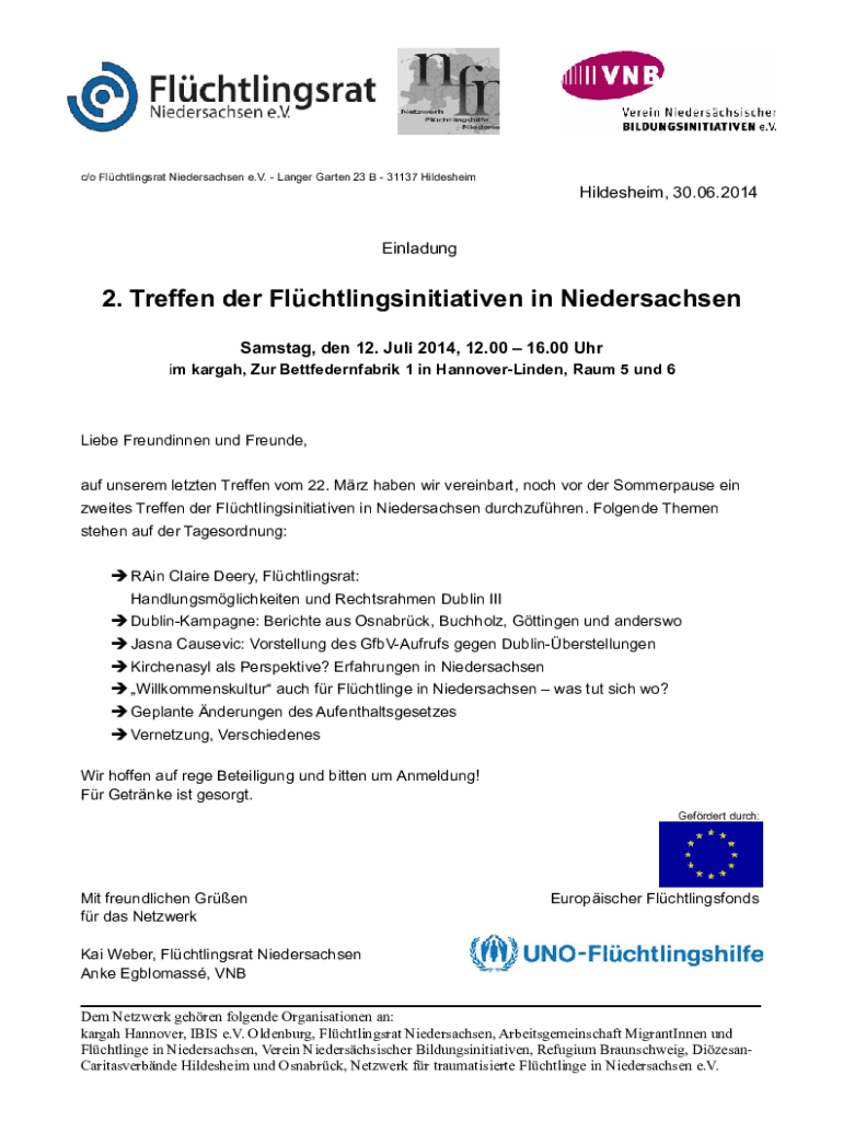 Einladung2. Reffed her Flchtlingsinitiativen in Niedersachsen