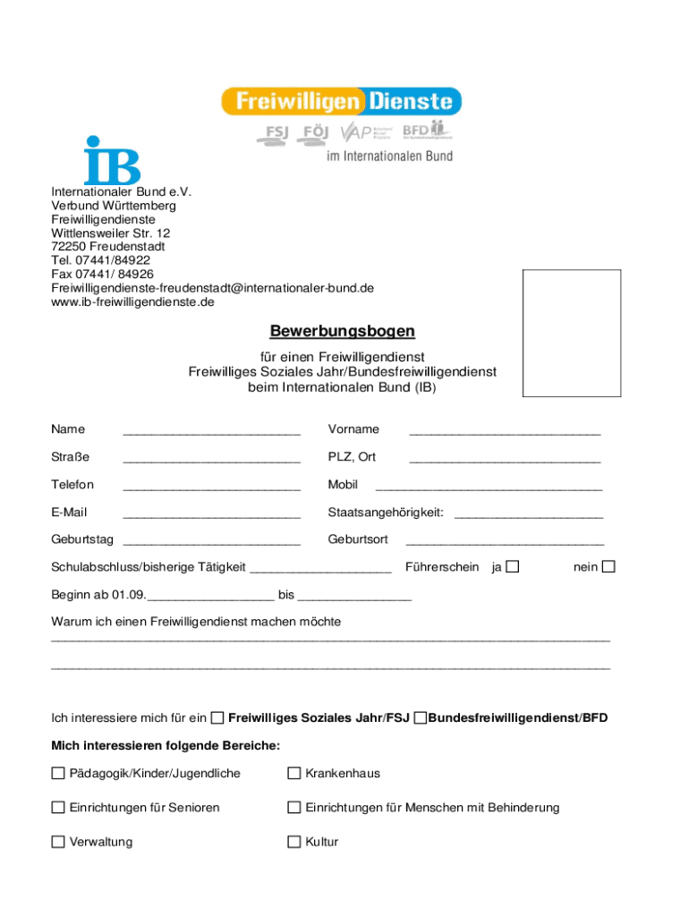 Wie fülle ich ib freiwilligendienste freudenstadt- internationaler aus?