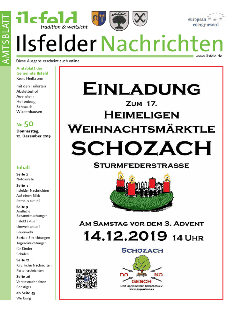 AMTSBLATTGEMEINDE ILSFELDIlsfelder Nachrichten www.ilsfeld.deDiese Ausgabe erscheint auch online Amtsblatt der Gemeinde Ilsfeld Kreis Heilbronn mit den Teilorten Abstetterhof Auenstein Helfenberg