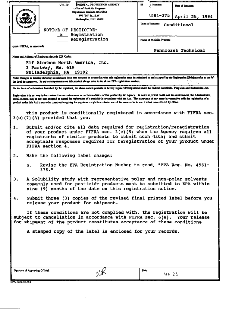 Get the free U.S. EPA, Pesticide Product Label, , 04/25/1994. Pesticide Product Label,