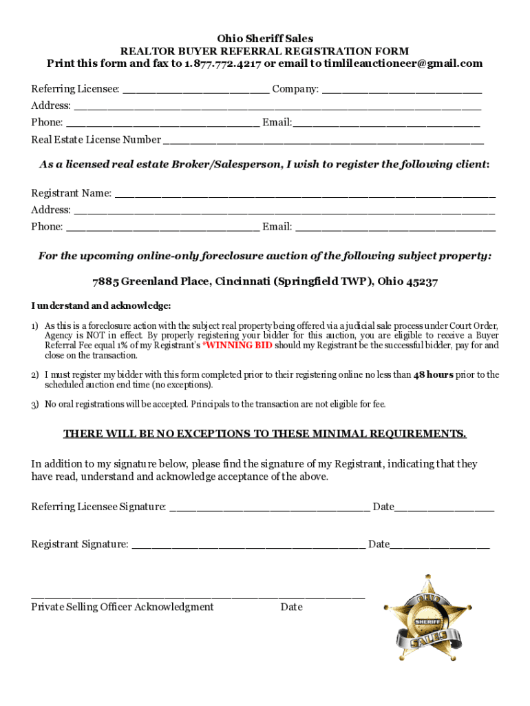 Referring Licensee: ___ Company: ___ Address: ___ Phone: ___ Email:___ Real Estate License Number ___ As a licensed real estate Broker/Salesperson, I wish to register the following client: Registrant