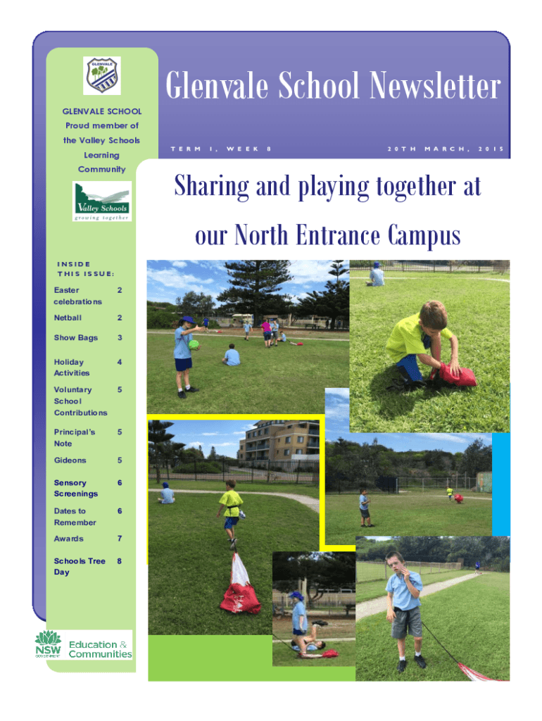 GLENVALE SCHOOLGlenvale School NewsletterProud member of the Valley Schools Learning CommunityT E R M1 ,W E E K82 0 T HM A R C H ,Sharing and playing together at our North Entrance CampusINSIDE THIS