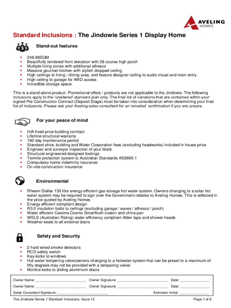 Get the free Standard Inclusions : The Jindowie Series 1 Display Home