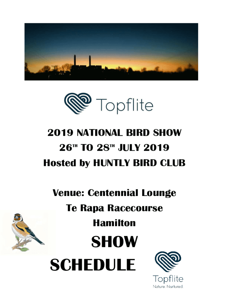2019 NATIONAL BIRD SHOW 26TH TO 28TH JULY 2019 Hosted by HUNTLY BIRD CLUB Venue: Centennial Lounge Te Rapa Racecourse HamiltonSHOW SCHEDULEPresidents Welcome On behalf of the Huntly Bird Club, I would