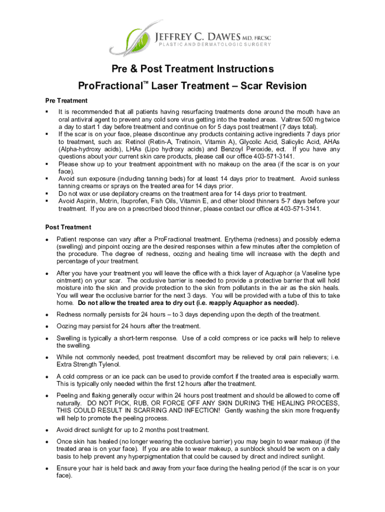 Pre & Post Treatment Instructions ProFractional Laser Treatment Scar Revision Pre Treatment It is recommended that all patients having resurfacing treatments done around the mouth have an oral antiviral