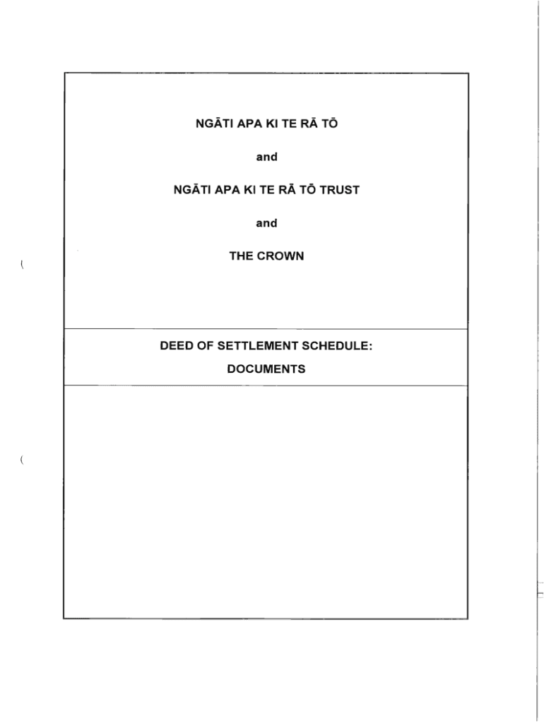 NGATI APA Kl TE RA TO and NGATI APA Kl TE RA TO TRUST andITHE CROWNDEED OF SETTLEMENT SCHEDULE: DOCUMENTS(NGATI APA DEED OF SETTLEM ENT DOCUM ENTS SCHEDULETABLE OF CONTENTS1. 1.1OVERLAY CLASSIFICATIONS....................................................................................................