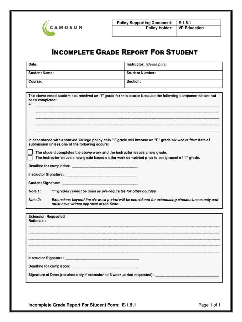 Get, Create, Make and Sign incomplete grade report for