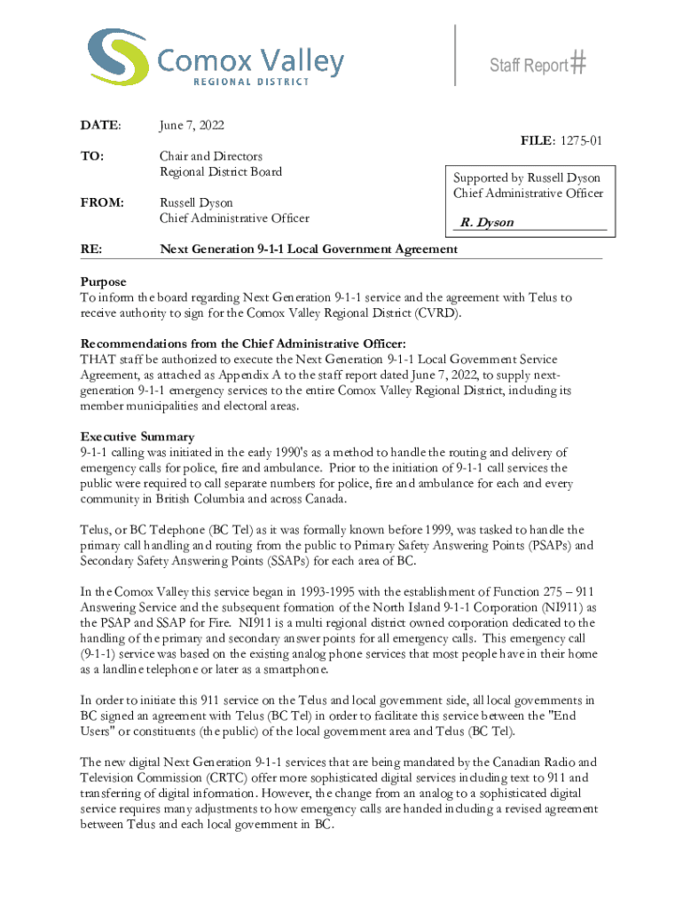 Staff Report DATE:June 7, 2022TO:Chair and Directors Regional District BoardFILE: 127501FROM: RE:Russell Dyson Chief Administrative OfficerSupported by Russell Dyson Chief Administrative OfficerR.