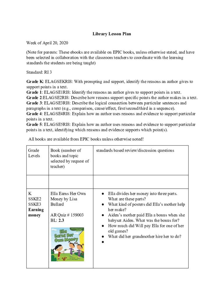 Get the free Library Lesson Plan Week of April 20, 2020 (Note for parents