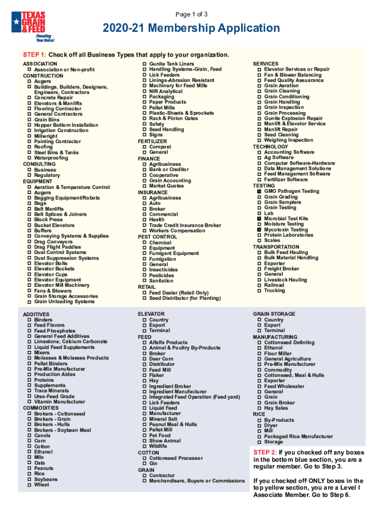 Page 1 of 3202021 Membership Application STEP 1:Check off all Business Types that apply to your organization. ASSOCIATION Association or Nonprofit CONSTRUCTION Augers Buildings, Builders, Designers,