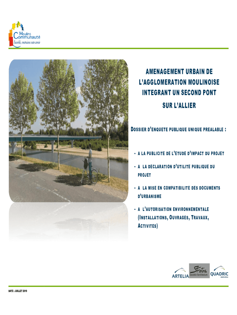 AMENAGEMENT URBAIN DE LAGGLOMERATION MOULINOISE INTEGRANT UN SECOND PONT SUR LALLIER DOSSIERD E N Q U E T E P U BL I Q U E U N I Q U E P R E A L A B L E A LA PUBLICITE DE LETUDE DIMPACT DU PROJET
