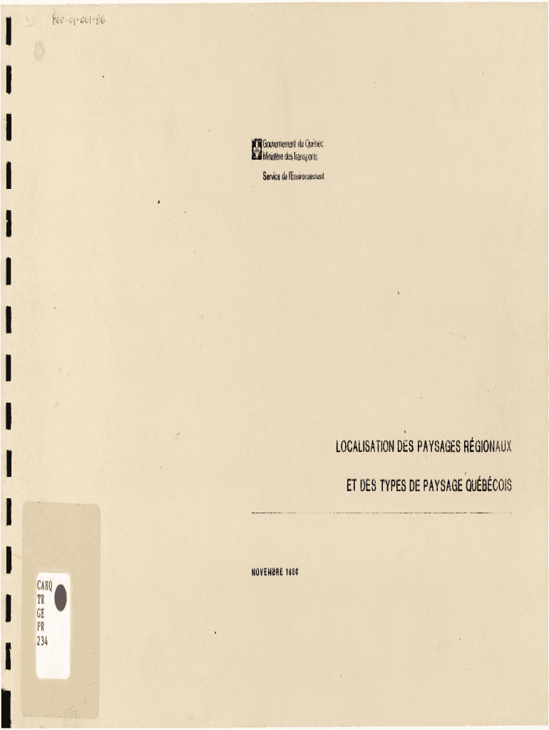 11 1a.JI Gouvernement du Qubec D Ministre des Trarispor ts1 1Service de l\'Environnt:m11t1 1 1 1 1,,\'\'ET DES TYPES DE PAYSAGE QUBCOIS1 11 11LOCALISATION DES PAYSAGES RGION AUXNOVEMBRE 1QS6CANQ .TRGE