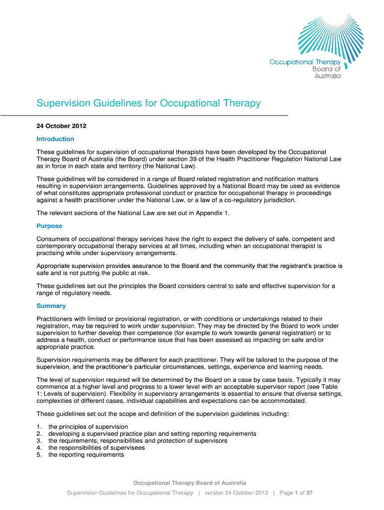 These guidelines for supervision of occupational therapists have been developed by the Occupational