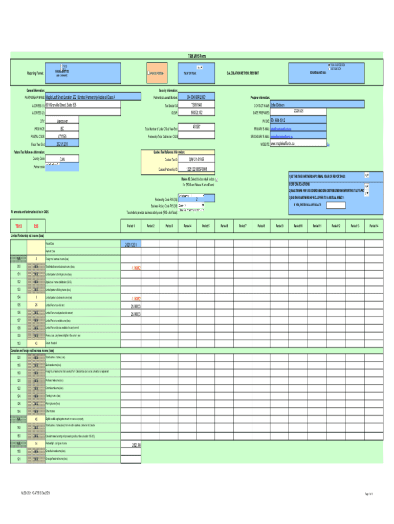 T5013/R15 Form T5013 R15 FORM SUBMITTED (see comment):Reporting Format:AMENDED POSTINGGeneral Information: PARTNERSHIP NAME: ADDRESS (1):CALCULATION METHOD: PER UNITTAXATION YEAR:Security Information:Maple