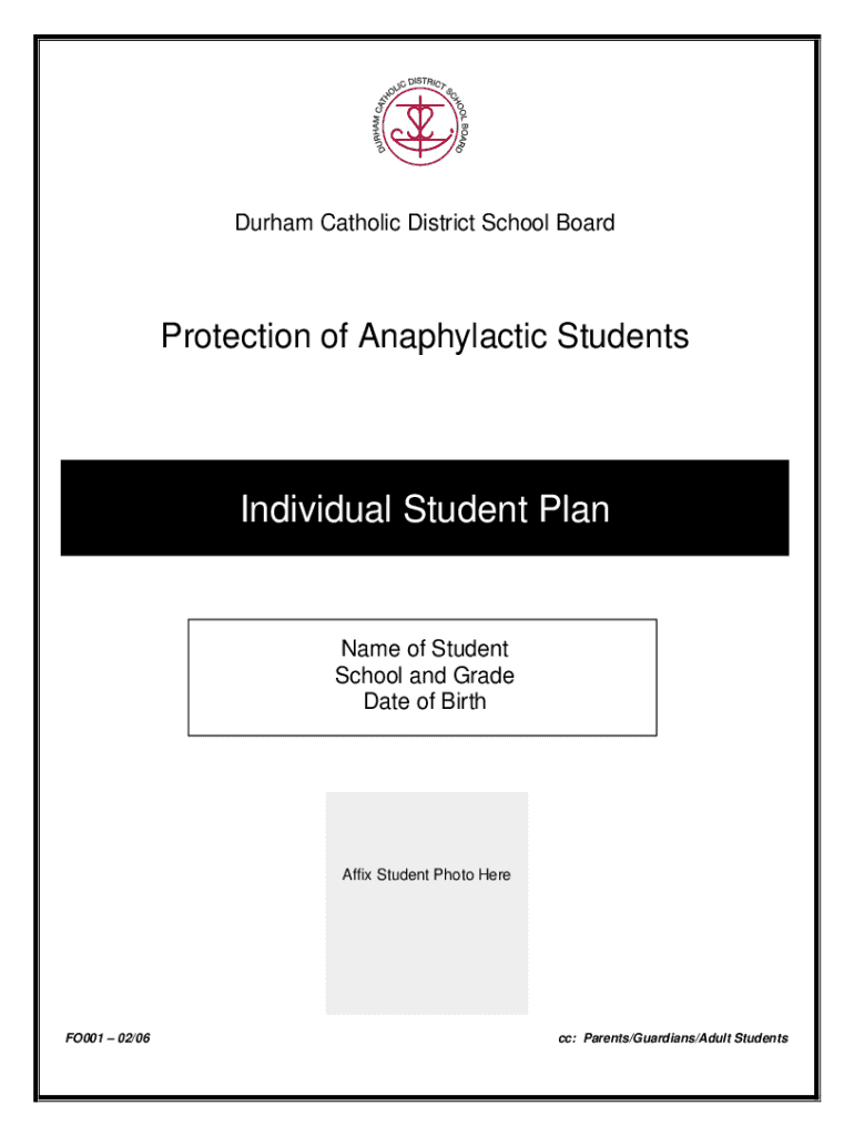 Durham Catholic District School BoardProtection of Anaphylactic StudentsIndividual Student PlanName of Student School and Grade Date of BirthAffix Student Photo HereFO001 02/06cc: Parents/Guardians/Adult