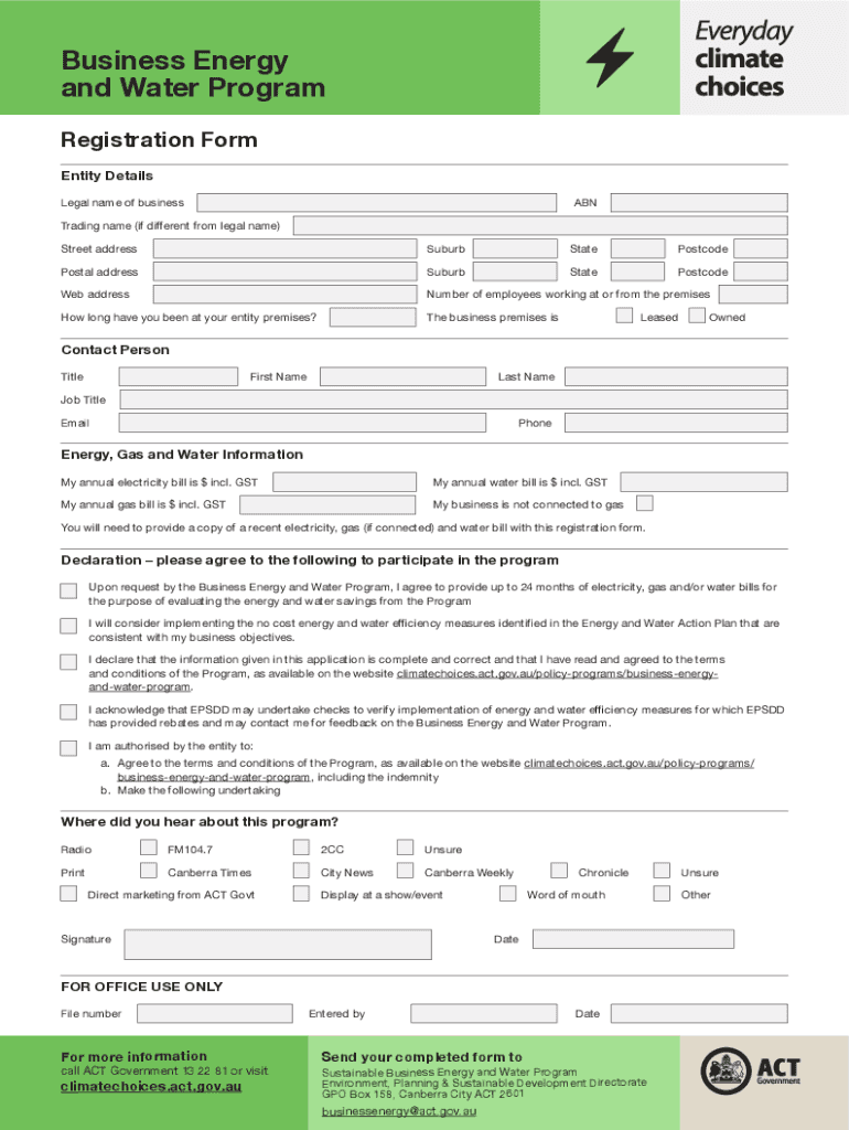 Get the free Business Energy and Water Program - Registration Form