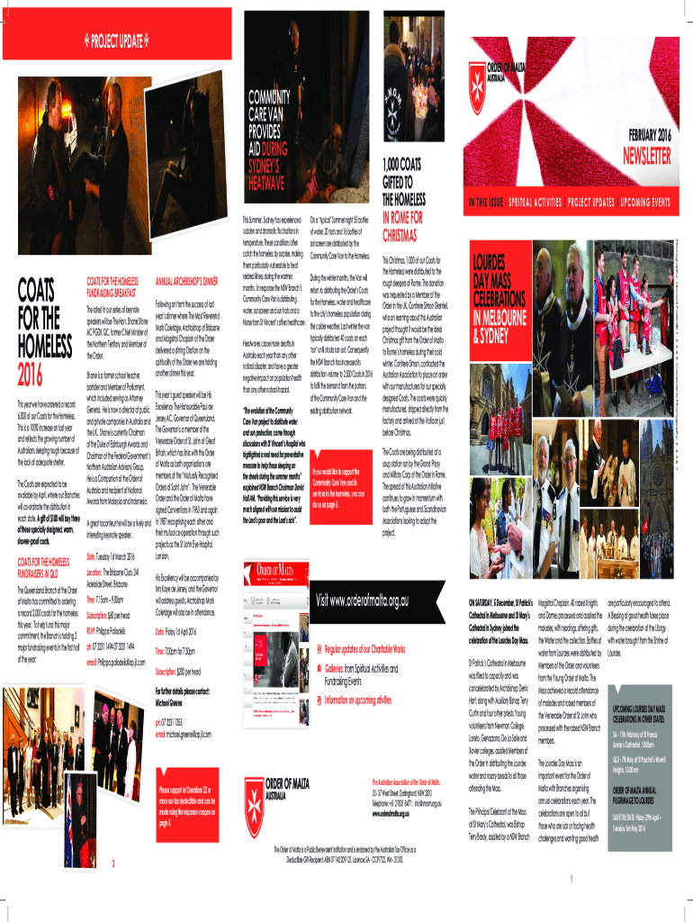 PROJECT UPDATECOMMUNITY CARE VAN PROVIDES AID DURING SYDNEYS HEATWAVEThis year we have ordered a record 6,000 of our Coats for the Homeless. This is a 100% increase on last year and reflects the growing