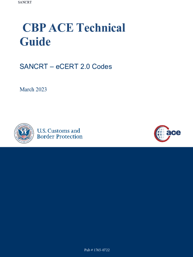 SANCRTCBP ACE Technical Guide SANCRT eCERT 2.0 Codes March 20231Pub # 17650722SANCRTSANCRT International Movement of Goods Governmental Regulatory Message Introduction: The SANCRT message permits