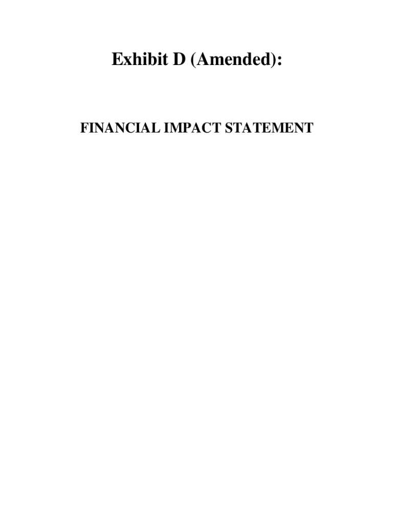 Exhibit D (Amended):FINANCIAL IMPACT STATEMENTFINANCIAL IMPACT STATEMENT PLEASE ANSWER ALL QUESTIONS COMPLETELY DEPARTMENT___ Office of Water Quality DIVISION___ PERSON COMPLETING THIS STATEMENT___