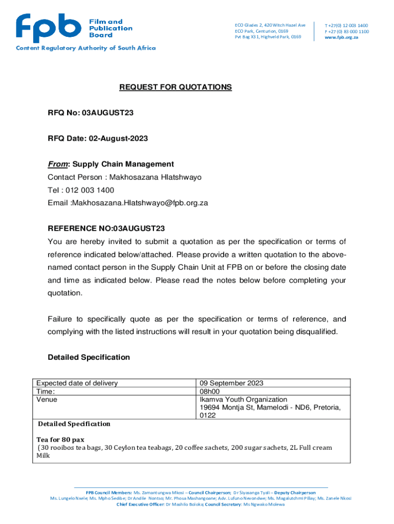 ECO Glades 2, 420 Witch Hazel Ave ECO Park, Centurion, 0169 Pvt Bag X31, Highveld Park, 0169T +27(0) 12 003 1400 F +27 (0) 83 000 1100 www.fpb.org.zaContent Regulatory Authority of South AfricaREQUEST