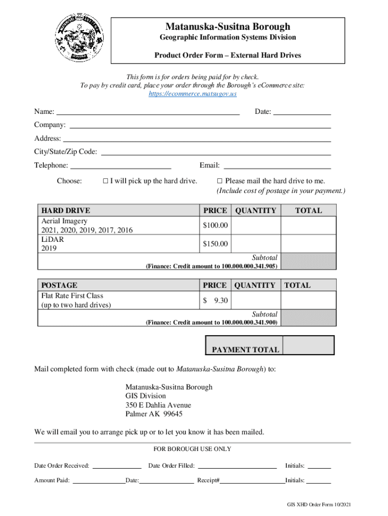 MatanuskaSusitna Borough Geographic Information Systems Division Product Order Form External Hard Drives This form is for orders being paid for by check. To pay by credit card, place your order through