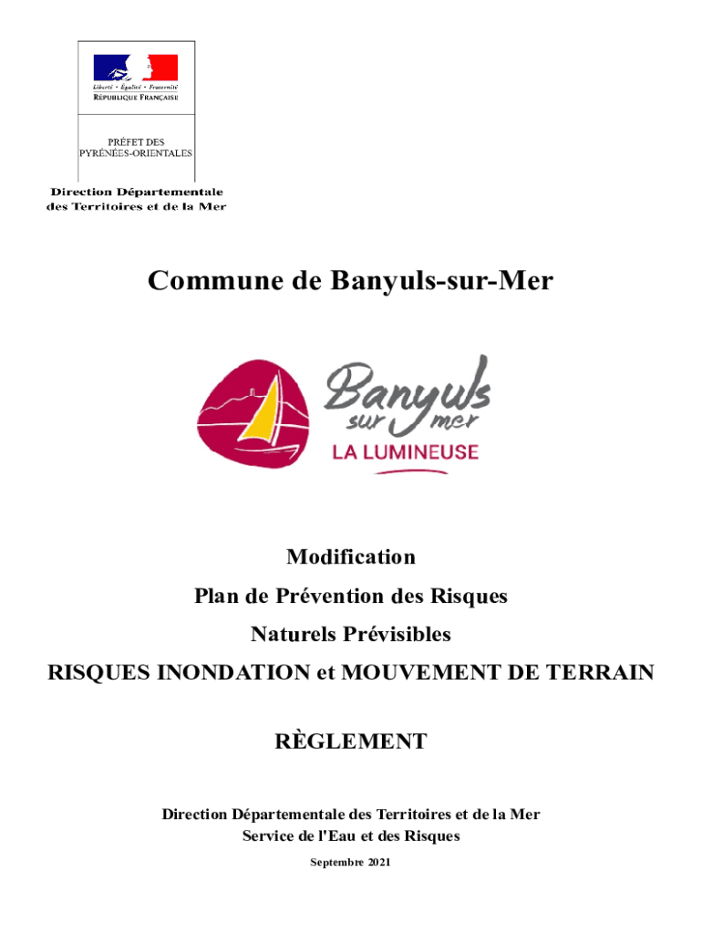 Commune de BanyulssurMerModification Plan de Prvention des Risques Naturels Prvisibles RISQUES INONDATION et MOUVEMENT DE TERRAIN RGLEMENT Direction Dpartementale des Territoires et de la Mer Service
