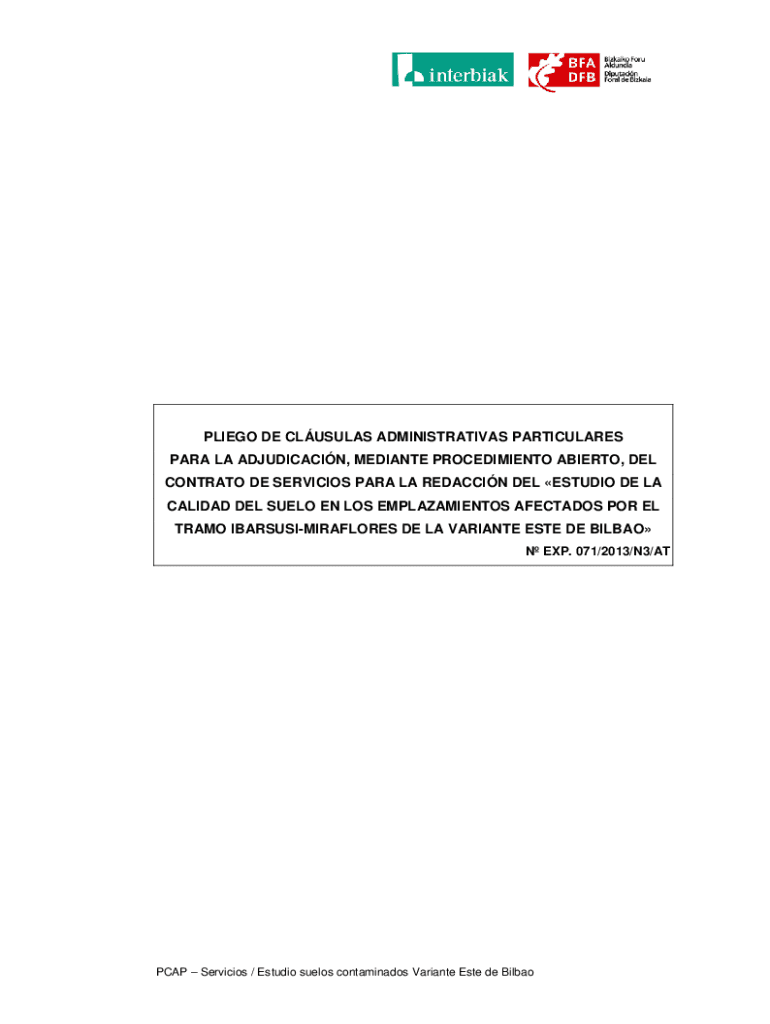 PLIEGO DE CLUSULAS ADMINISTRATIVAS PARTICULARES PARA LA ADJUDICACIN, MEDIANTE PROCEDIMIENTO ABIERTO, DEL CONTRATO DE SERVICIOS PARA LA REDACCIN DEL ESTUDIO DE LA CALIDAD DEL SUELO EN LOS EMPLAZAMIENTOS