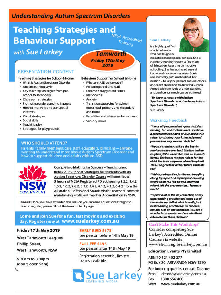Understanding Autism Spectrum DisordersTeaching Strategies andNE SA Ac cred Traini ited Behaviour Support ng with Sue LarkeyTamworth Friday 17th May 2019PRESENTATION CONTENT Teaching Strategies for