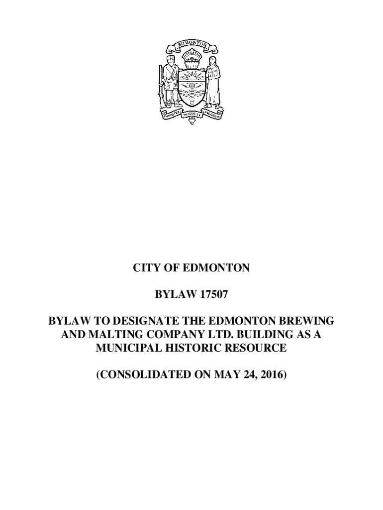 CITY OF EDMONTON BYLAW 17507 BYLAW TO DESIGNATE THE EDMONTON BREWING AND MALTING COMPANY LTD. BUILDING AS A MUNICIPAL HISTORIC RESOURCE (CONSOLIDATED ON MAY 24, 2016)THE CITY OF EDMONTON BYLAW 17507