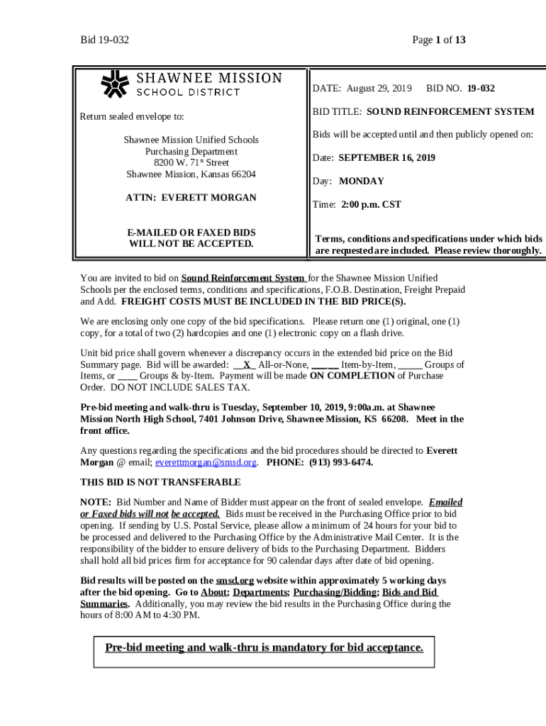 Template BID TITLE:SOUND REINFORCEMENT SYSTEM instructions