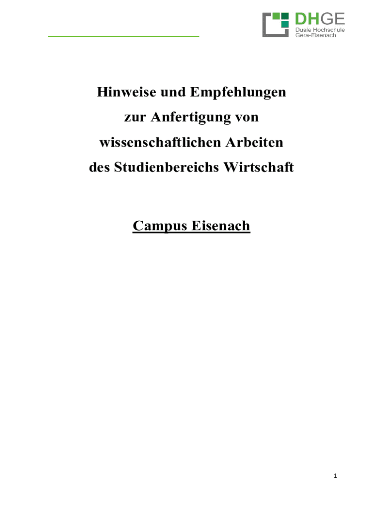 Hinweise und Empfehlungen zur Anfertigung von wissenschaftlichen Arbeiten des Studienbereichs WirtschaftCampus Eisenach1 Inhaltsverzeichnis 12IInhalte einer wissenschaftlichen Arbeit ..............................................................................