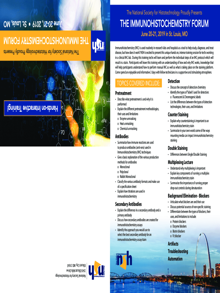 The National Society for Histotechnology Proudly PresentsTHE IMMUNOHISTOCHEMISTRY FORUM June 2021, 2019 in St. Louis, MO Immunohistochemistry (IHC) is used routinely in research labs and hospitals