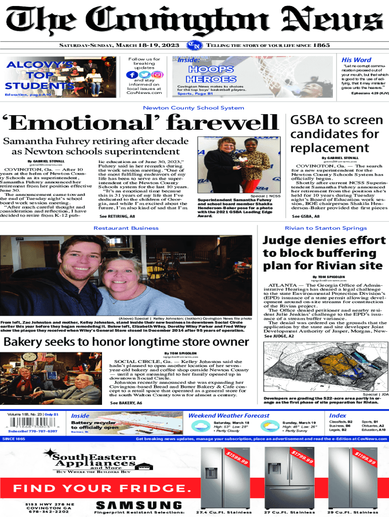 SaturdaySunday, March 1819, 2023 Follow us for breaking updatesALCOVYS TOP STUDENTSand stay informed on local issues at CovNews.comEducation, page A10Telling the story of your life since 1865Inside:His