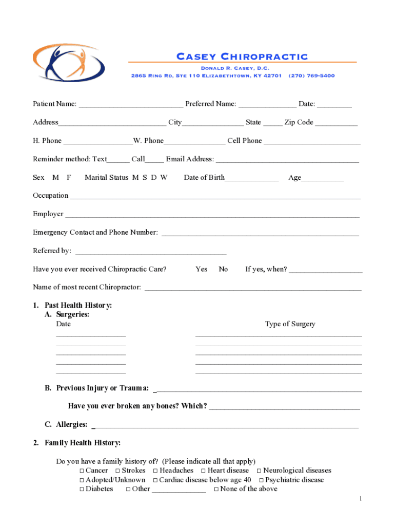 Patient Name: ___ Preferred Name: ___ Date: ___ Address___ City___ State ___ Zip Code ___ H. Phone ___W. Phone___ Cell Phone ___ Reminder method: Text___ Call___ Email Address: ___ SexMFMarital Status