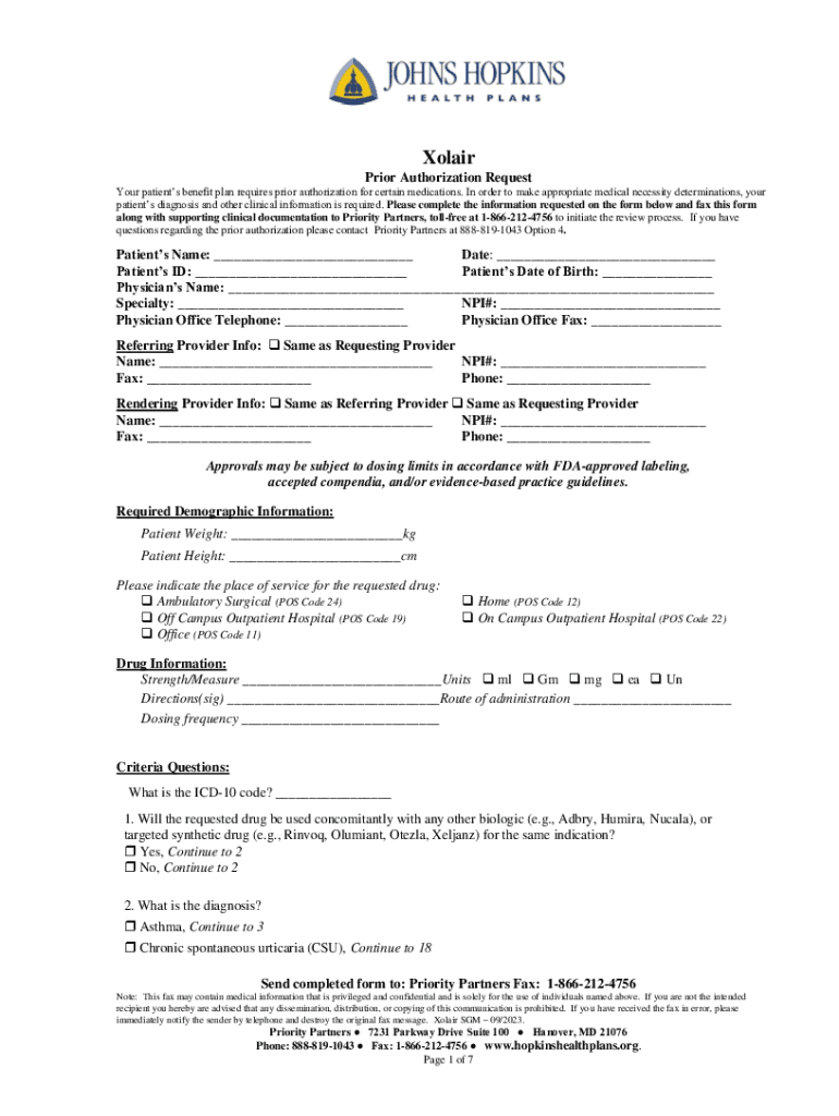 Prior Authorization Request Your patients benefit plan requires prior authorization for certain medications. In order to make appropriate medical necessity determinations, your patients diagnosis